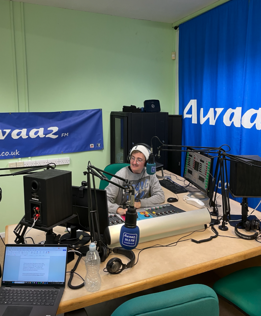 Awaaz är en liten radiokanal som drivs helt av volontärer. Det är en multikulturell lokalradio som riktar sig till den sydasiatiska befolkningen i Southampton, med en mix av Bollywood och engelskspråkig musik. Veckan är uppdelad i olika program som återkommer samma tid och dag varje vecka, och innehållet är väldigt brett. Den röda tråden i alla program är lokaljournalistik – att uppmärksamma det som händer här i Southampton.